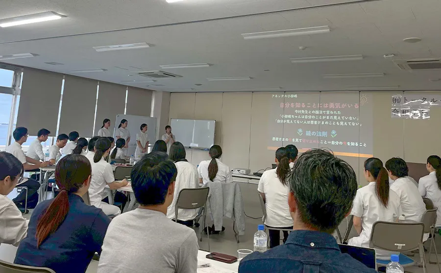 また、研修は診療の空き時間で行うのでなく、診療を止めて全社員で行う時間も設けています。